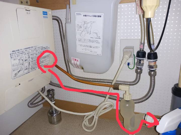 原因は電気温水器の経年劣化による漏水でした。電気温水器には膨張水を逃す機能があります。20年ほど経過し、部品が壊れ膨張水だけでなく給水をそのまま排出しておりました。